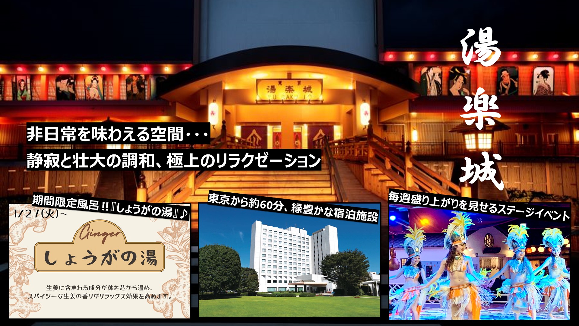 ステージでは毎週末、湯楽城を盛り上げる様々なエンターテイメントショーを開催