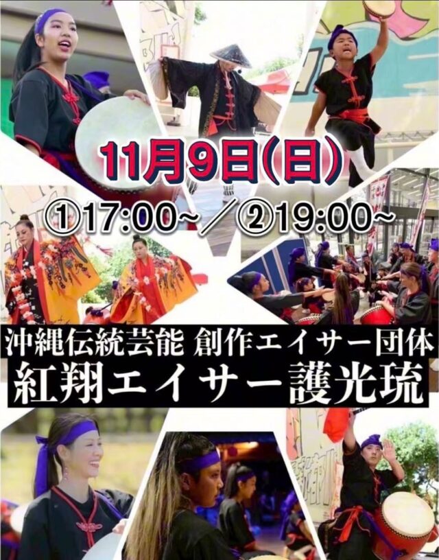 紅翔エイサー護光琉:沖縄の伝統芸能、創作エイサー団体による歌と踊りとエイサーで、皆様に夏の琉球の風をお届けします。