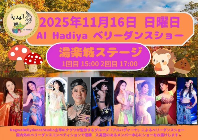 アルハディーヤ:国内外のベリーダンスコンベティションで優勝、準優勝の受賞歴を持つメンバーでお届けします。