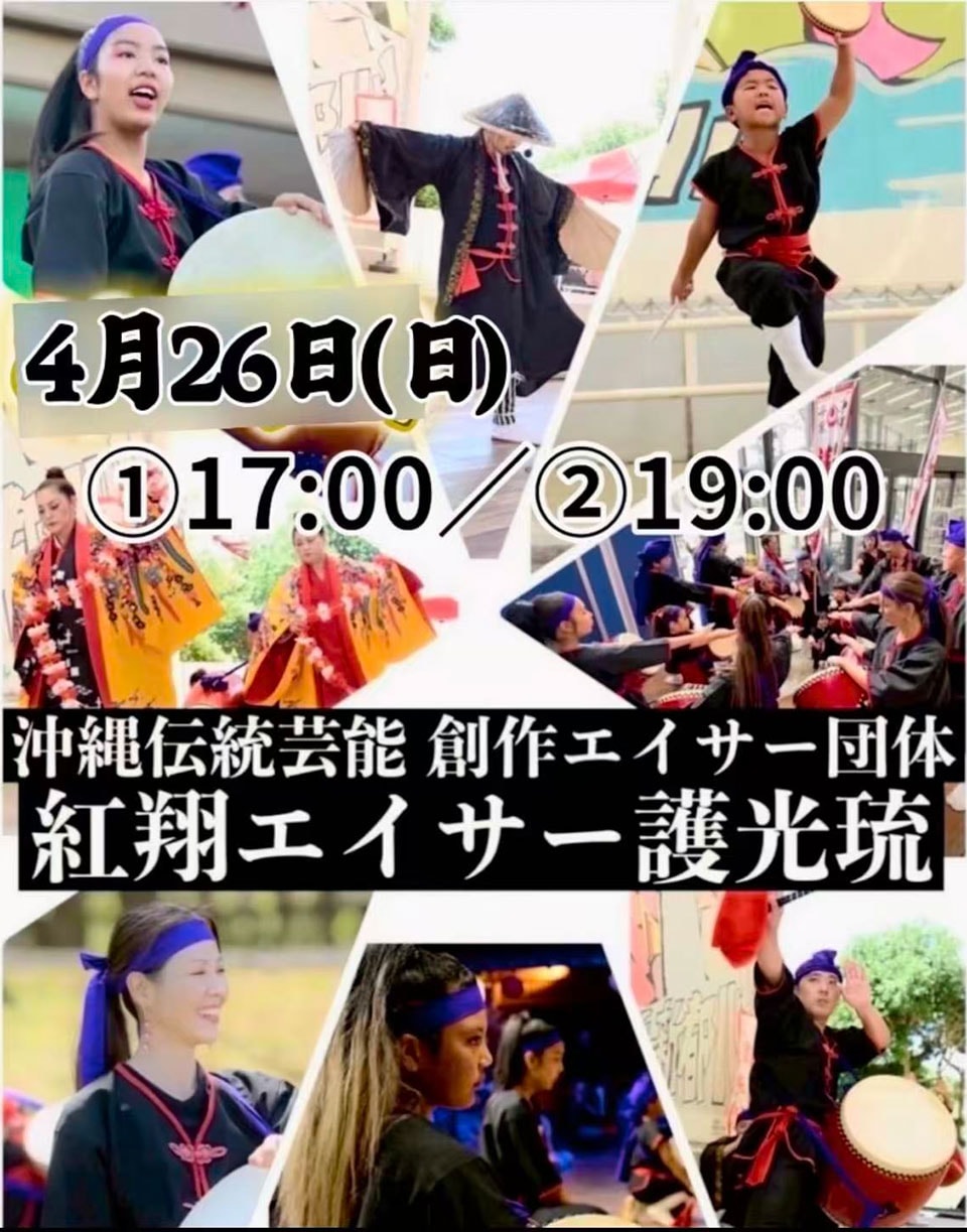 2026/03/23 紅翔エイサー 開催日: 2026年4月26日カテゴリー: イベント 紅翔エイサー護光琉:沖縄の伝統芸能、創作エイサー団体による歌と踊りとエイサーで、皆様に夏の琉球の風をお届けします。