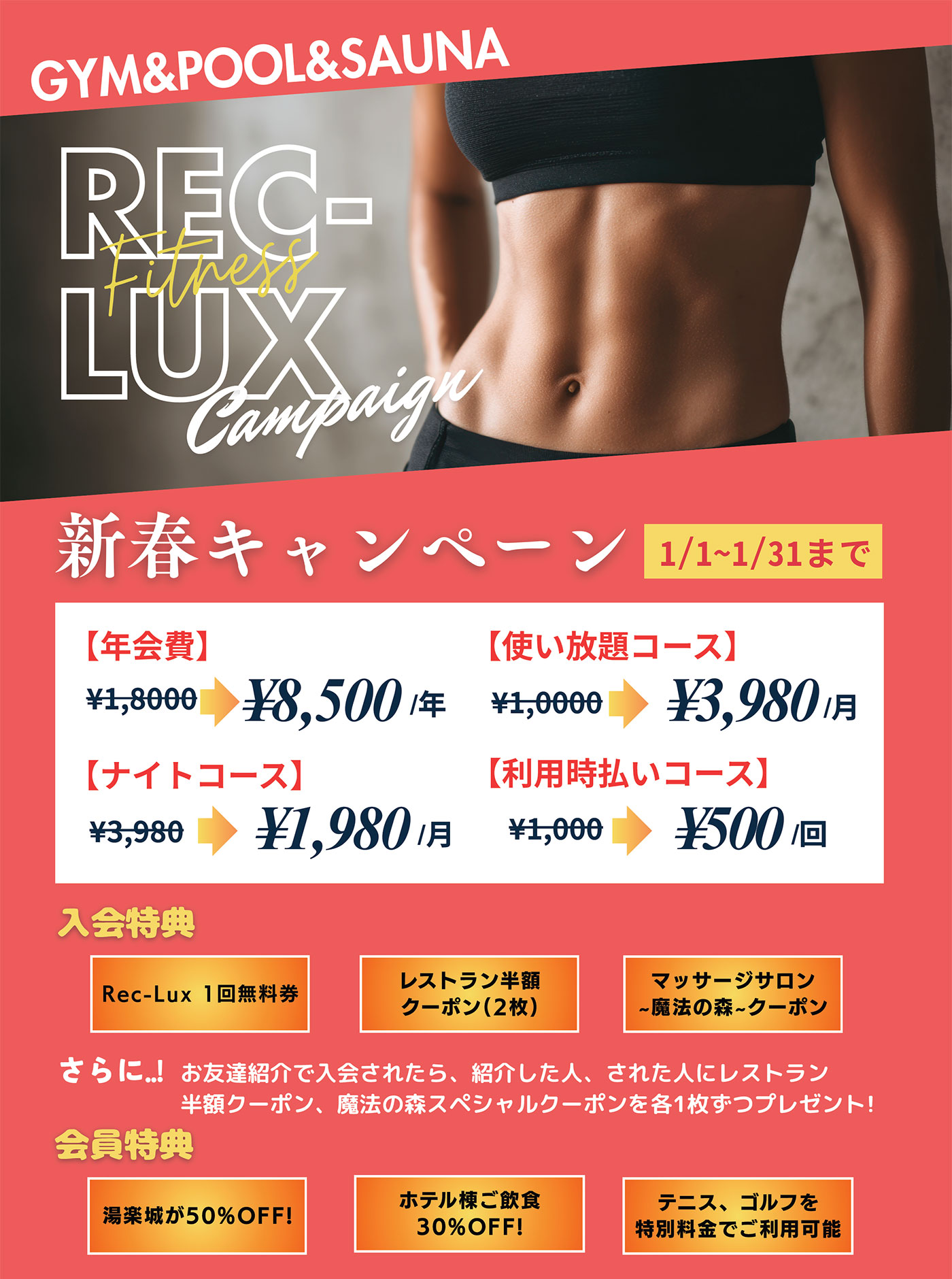 スポーツジム(以後レクラックス)ではレクラックス年間会員を受付けております。